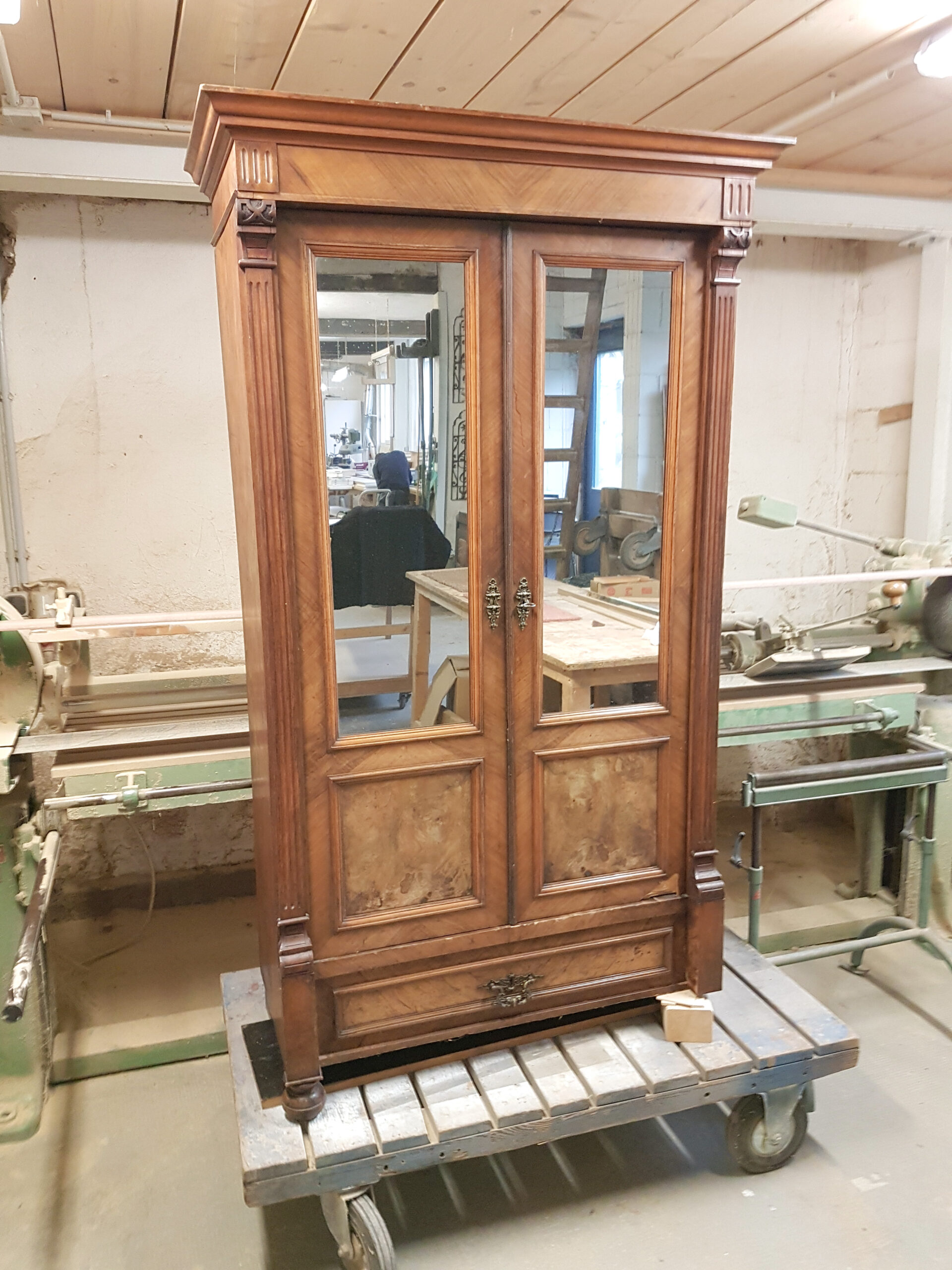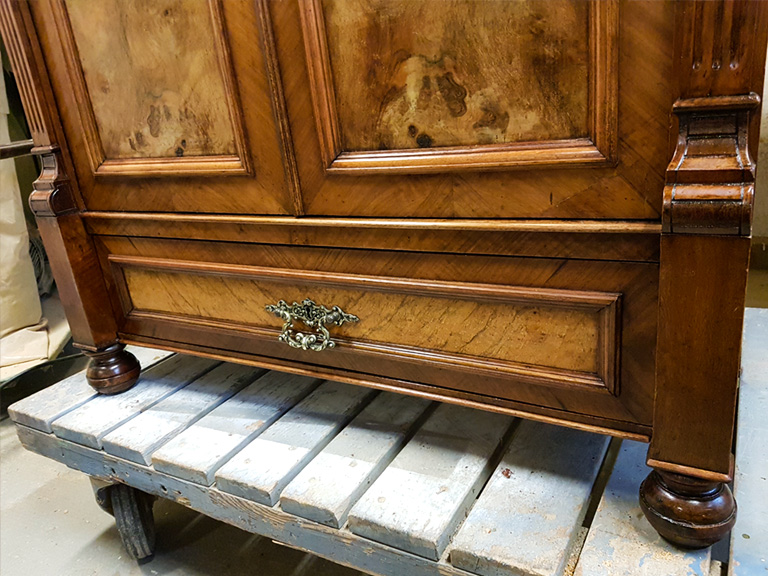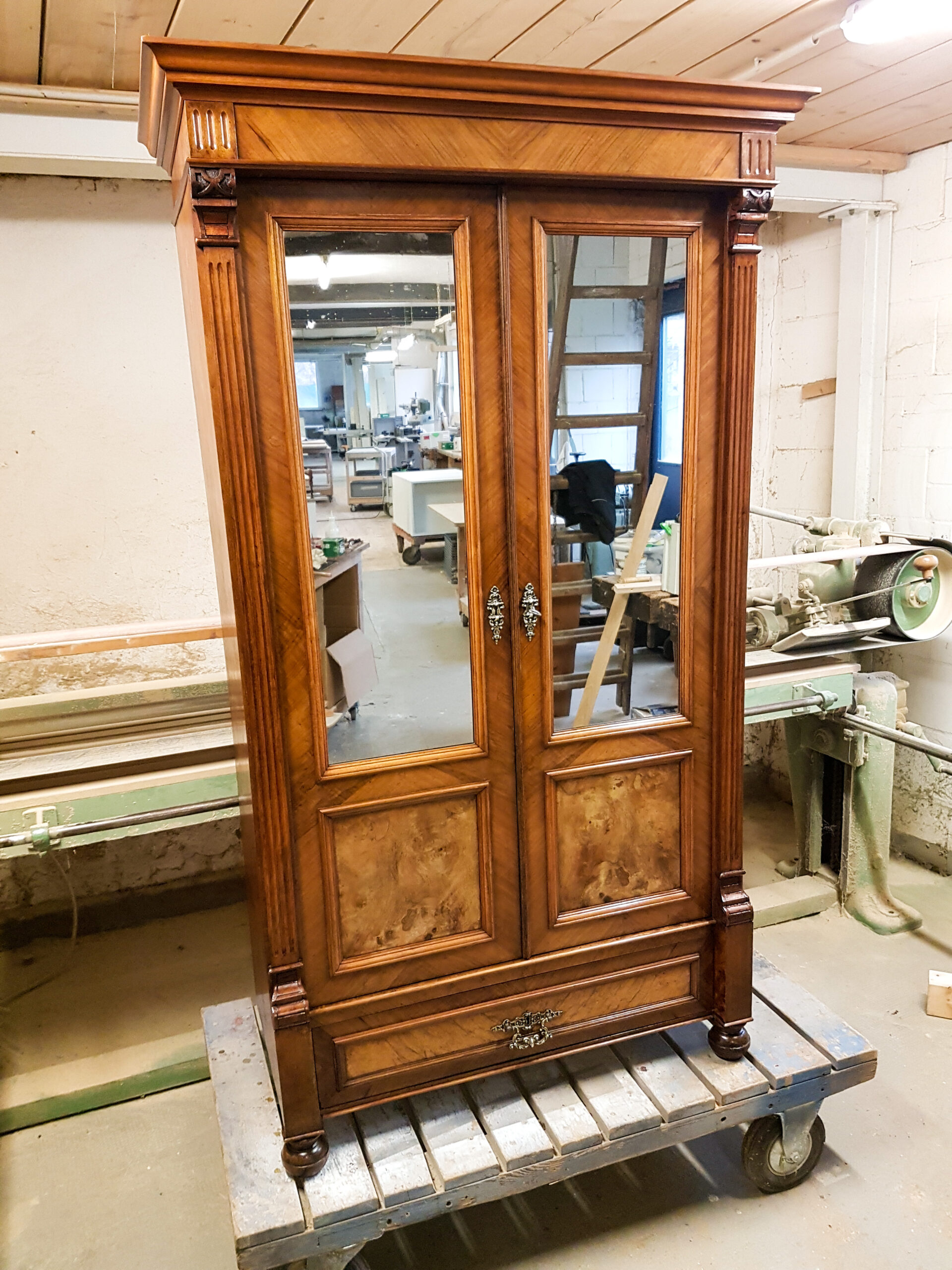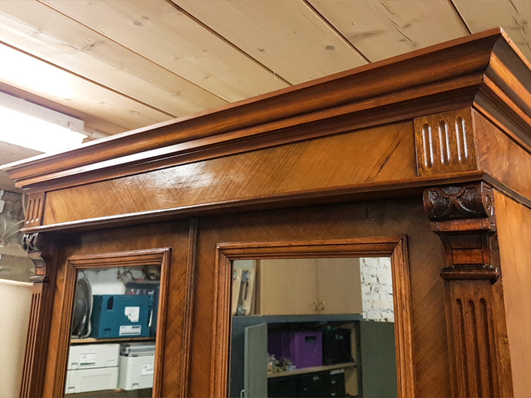 Gründerzeit-Schrank, Nussbaum Schellackpolitur