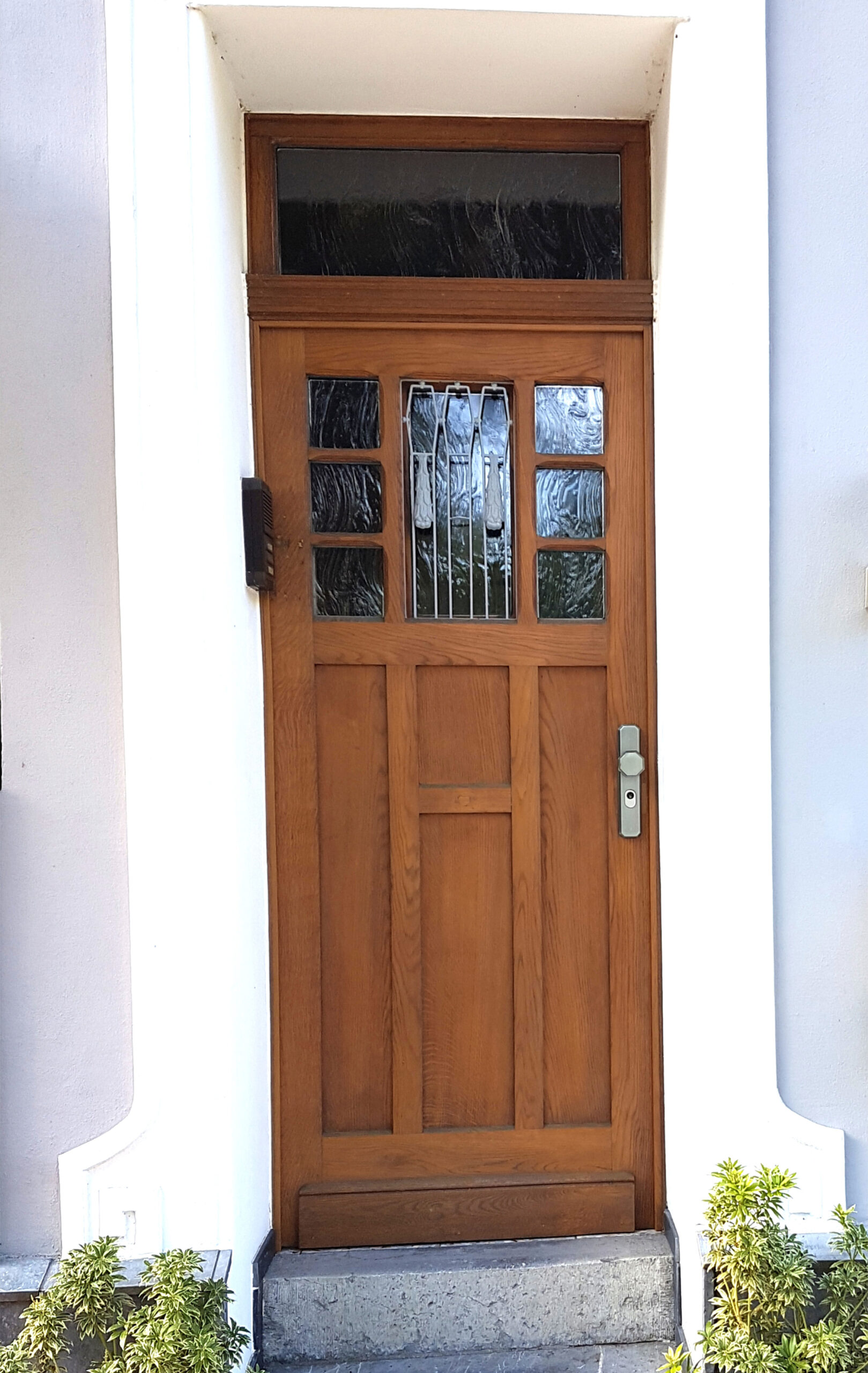 Aufgrund dieser Maßnahmen konnte die Tür, die für das Haus um 1906 angefertigt wurde erhalten bleiben und gleichzeitig für heutige Anforderungen ertüchtigt werden.